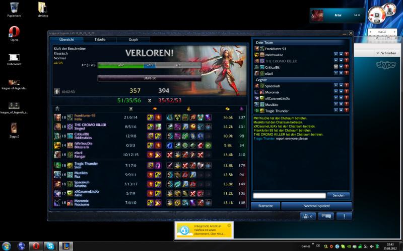 Dann irgendwann bin ich wieder an den PC dachte ich starte LoL nochmal und dann lief das SPiel trotzdem.