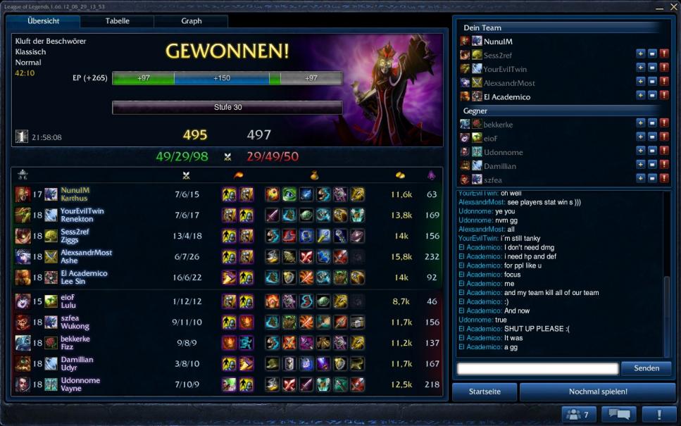 Weil dann das geflame losging bin ich allein schon aus prinzip drin geblieben und musste Karthus dann als Support spielen. ^^