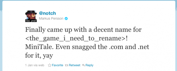 Ehrlich gesagt hatte ich kurzzeitig sogar überlegt direkt eine Unterrubrik zu machen nachdem Notch den Namen seines neuen Spieles Minitale bekannt gegeben hat.