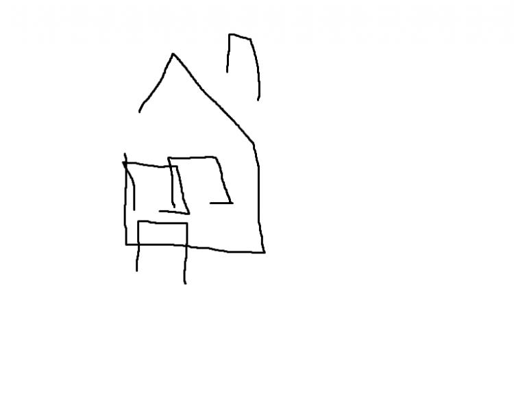 Schließt die Augen und malt in Paint Ein Haus mit paar Fenstern, eine Tür, ein Dach und ein Schornstein!