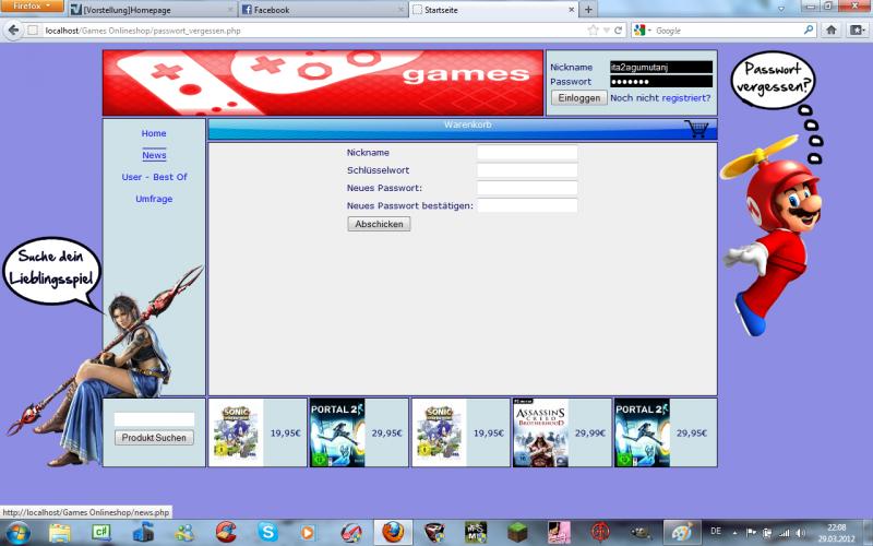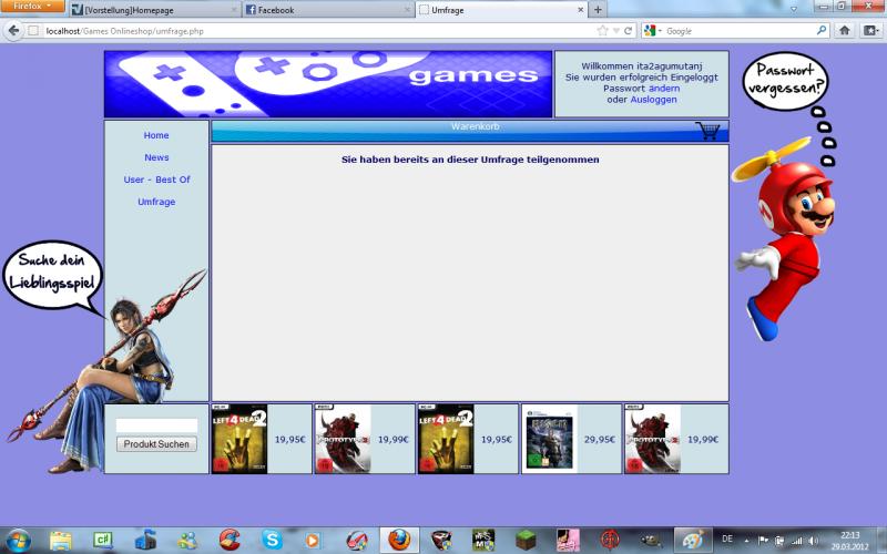 Bau Mario und die Tussi mehr in den Hintergrund mit ein, das sieht so aufgesetzt aus, verstehste was ich meine? Am besten dezenter Hintergrund und die Grafiken irgendwie mit eingearbeitet.