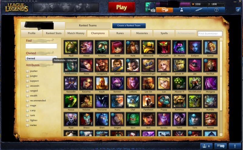 Ich Verkaufe mein LoL account er ist level 30 mit 687 wins 20 ranked wins und 36 loses