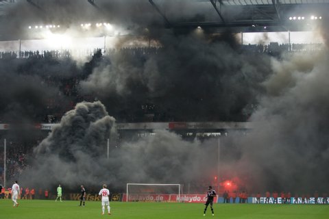 Kurz vor Spielschluss eskalierte die Situation im Kölner Stadion. Dutzende Fans kletterten über die Zäune, Rauchbomben wurden gezündet, das Station glich einem Schlachtfeld. Schiedsrichter Florian Meyer pfiff das Spiel 10 Sekunden zu früh ab, aus Sorge vor Übergriffen. Fans stürmten auf das Feld, aber die Spieler flüchteten in die Katakomben. Die Polizei sicherte das Feld. Ein trauriger Abschied einer verkorksten Saison.