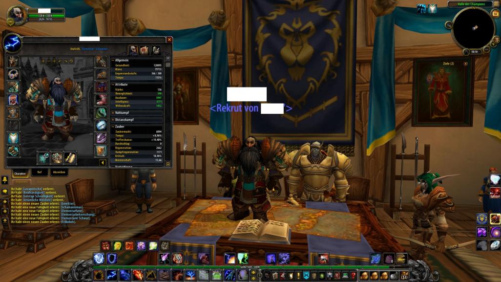 Mein twink ist ein Verstärker Shamy (zwerg männlich) und hat ein Gearscore von 375 und als Ele 363.