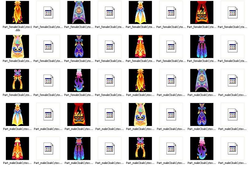 Im Paket sind 10!!, sehr ansehnliche, Cloaks enthalten, jeweils männlich und weiblich (in bester Auflösung), die .DDS und .O3D sind natürlich miteinander verknüpft.