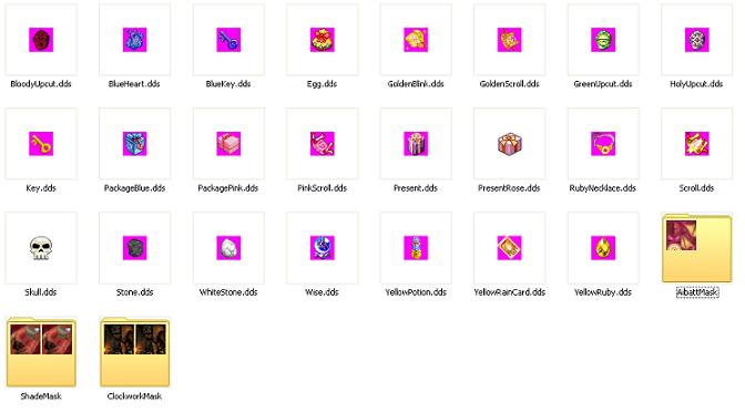 Im Random Paket sind 23 weitere .DDS-Dateien vorhanden, beispielsweise neue Icons für Scrolls, Blinkwings, Boxen, Keys etc.