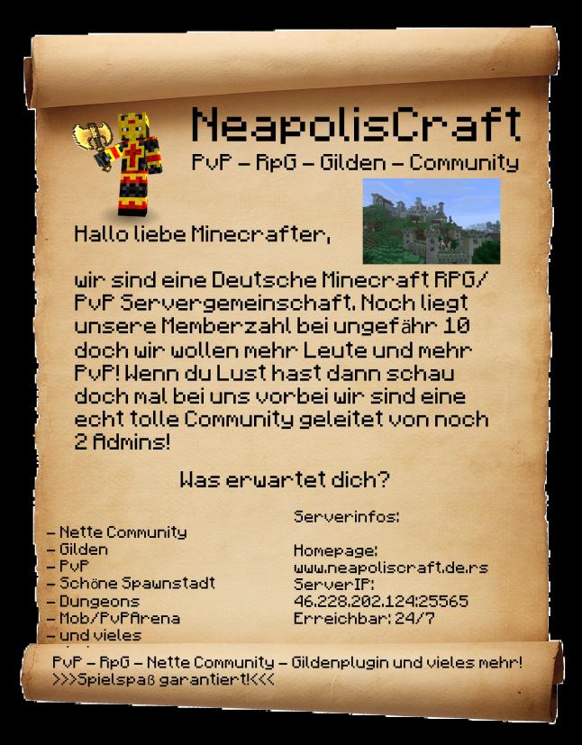 Wir sind ein PvP/RPG Minecraft Server.