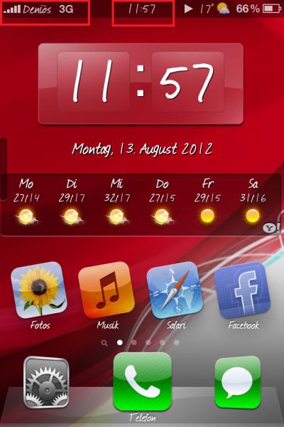 Verändert den Namen des Anbieters und die Uhrzeit.