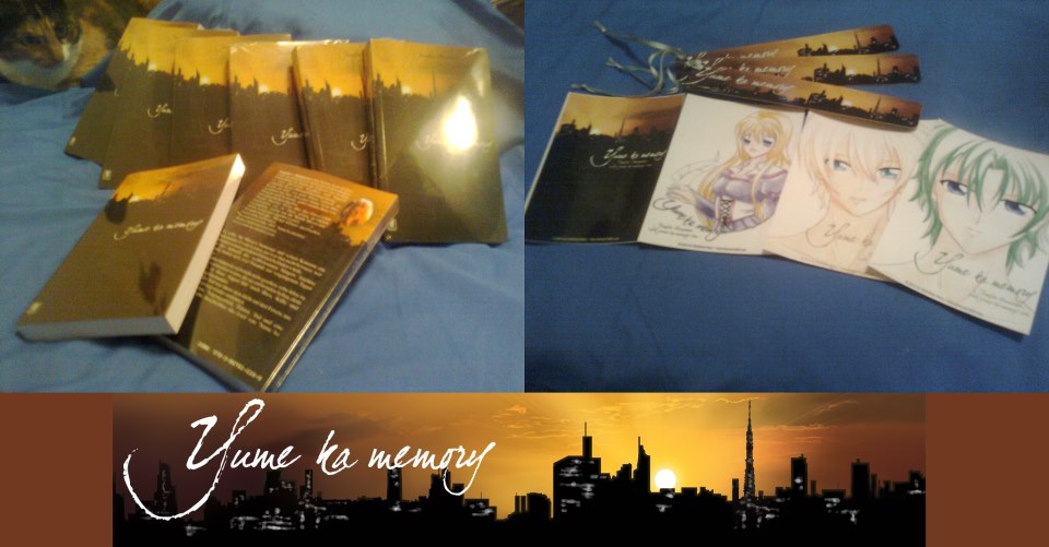 ??? YUME KA MEMORY ??? ~ Endlich habe ich alles beisammen, die Bücher habe ich ja schon ne Woche hier liegen. Doch ich musste noch auf meine Goodies warten. >_< Aber hier darf ich euch nun endlich nach langem warten, 'Yume ka memory' präsentieren! Banzai Banzai ! >_< Die Bücher liegen hier bereit und warten nun darauf, gekauft zu werden und um die ganze Sache noch ein wenig reizvoller zu gestalten, verlose ich unter den ersten Bestellern, jeweils 3x ein wunderschönes Yume ka memory Lesezeichen, sowie 3x die vier hübschen Postkarten und als Abschluss noch ein kleines Überraschungsgeschenk !!! Ich freu mich auf eure Emails, alle Informationen hierzu, findet ihr auf meiner Homepage (www.yume-ka-memory.com) unter 'Kontakt'! <