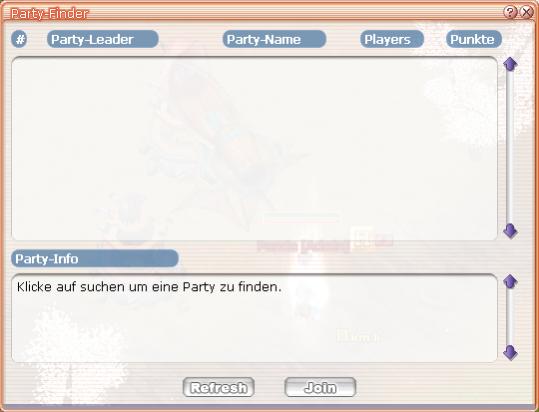 [SPOILER2]Wir haben auch einen einzigartigen Partyfinder! Zu Faul um nach Parties zu suchen oder nach Fillern? Mit dem Partyfinder ist es kein Problem mehr! Alle Parties werden im Partyfinder Fenster aufgelistet! Du kannst dir einen aussuchen und den joinen!