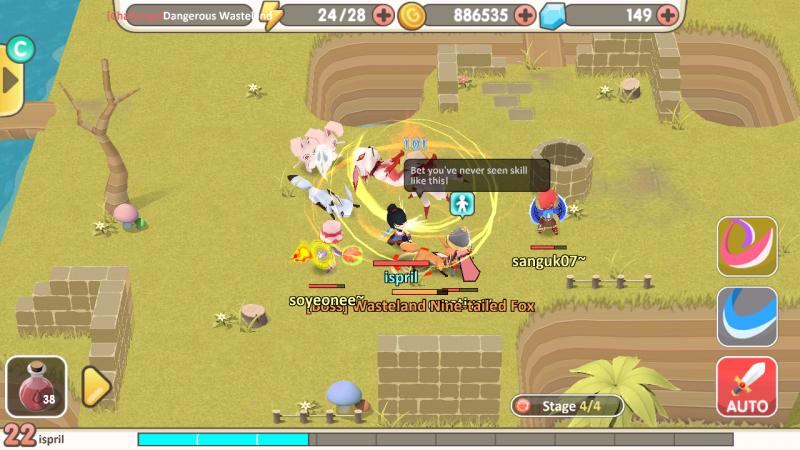 Außerdem kann man die Dungeons in Echtzeit (!) mit Freunden betreten und sich gegenseitig helfen. Hier gibt es auch eine Art "Lobby", in der Spieler sich gegenseitig sehen - auch wenn sie nicht befreundet sind. Um seine Zeit zu vertreiben kann man da gleichzeitig noch einige Monster beseitigen und seinen Charakter etwas verbessern. ;)